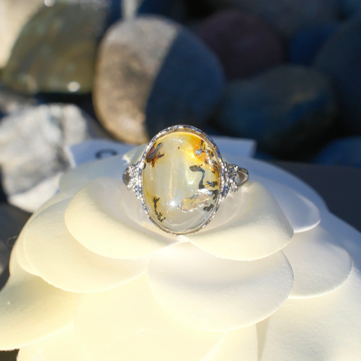 Natural Pyrolusite Quartz Ring