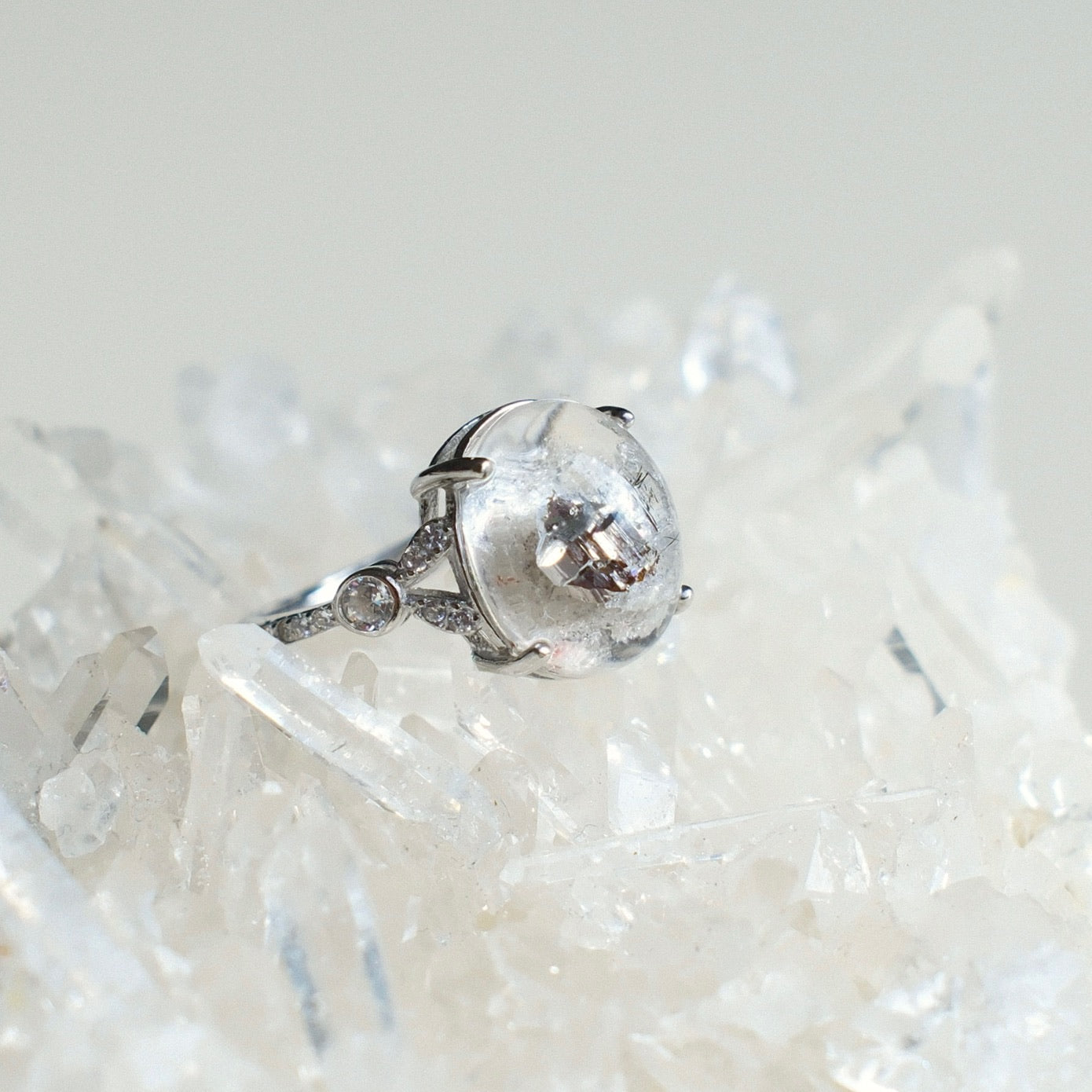 - The ring holder is crafted from 925 sterling silver and features an adjustable design for wear.
